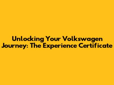 Unlocking Your Volkswagen Journey: The Experience Certificate