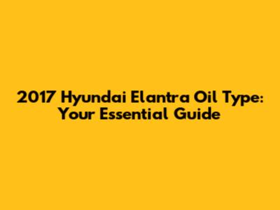 2017 Hyundai Elantra Oil Type: Your Essential Guide