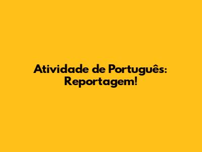 Atividade De Português: Reportagem!