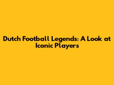 Dutch Football Legends: A Look At Iconic Players