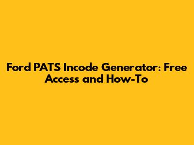 Free Ford PATS Incode Generator: Get Yours Now!