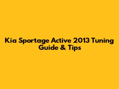 Kia Sportage Active 2013: Tuning Guide & Tips