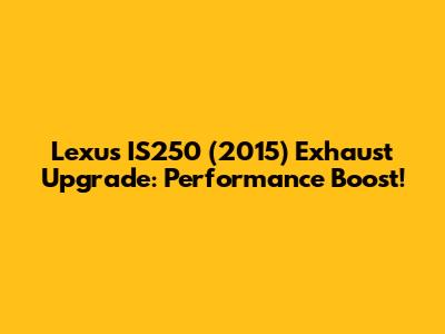 Upgrading your 2015 Lexus IS250 exhaust is a fantastic way to improve its performance, sound, and aesthetics. By considering the type of system, sound level, performance goals, budget, and installation process, you can choose the perfect exhaust system for your needs. So, go ahead and give your IS250 the upgrade it deserves!