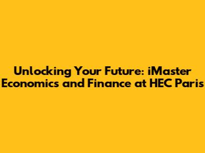 Unlocking Your Future: IMaster Economics And Finance At HEC Paris