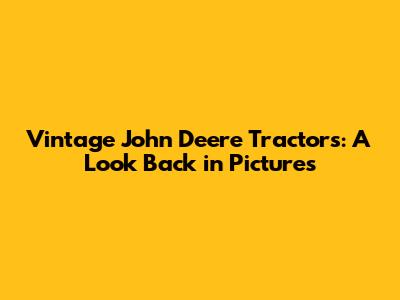 Vintage John Deere Tractors: A Look Back In Pictures