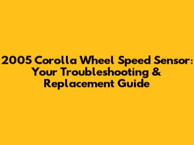 2005 Corolla Wheel Speed Sensor: Troubleshooting & Replacement