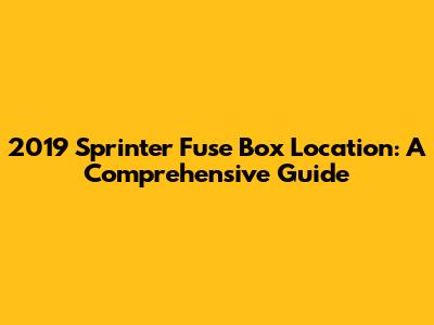 2019 Sprinter Fuse Box: Find & Fix Your Electrical Issues