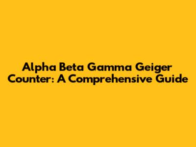 Alpha Beta Gamma Geiger Counter: A Comprehensive Guide