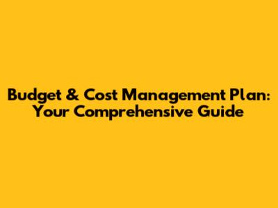 Budget & Cost Management Plan: Your Comprehensive Guide