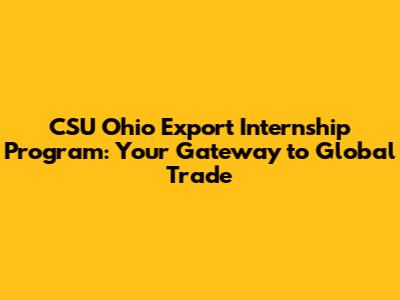 CSU Ohio Export Internship: Your Gateway To Global Trade