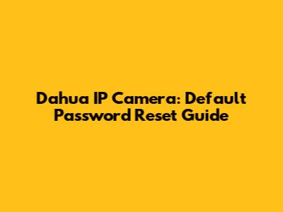 Dahua IP Camera: Default Password Reset Guide