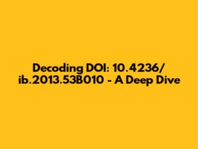 Now, let's dissect the specific DOI 10.4236/ib.2013.53B010. The 10 is a prefix, a directory indicator, assigned by the International DOI Foundation. All DOIs start with 10. The 4236 that follows is the registrant code, assigned to a specific organization. In this case, it identifies the publisher or organization responsible for registering the content. Then comes /ib.2013.53B010, which is the suffix. The suffix is assigned by the registrant and uniquely identifies the specific digital object. It can contain letters, numbers, and symbols. Breaking down these components gives you insight into the content's origin and its unique place within the digital ecosystem. Without this kind of structure, keeping track of millions of online resources would be an absolute nightmare! So next time you see a DOI, remember it's a carefully constructed identifier that plays a vital role in maintaining the integrity of online information. Think of it as the DNA of a digital document!