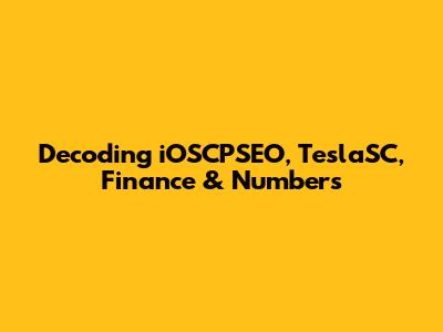 Decoding IOSCPSEO, TeslaSC, Finance & Numbers