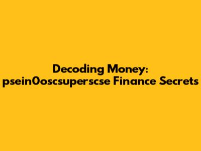 Decoding Money: Psein0oscsuperscse Finance Secrets