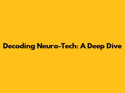 Decoding Neuro-Tech: A Deep Dive