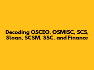 Decoding OSCEO, OSMISC, SCS, Sloan, SCSM, SSC, And Finance