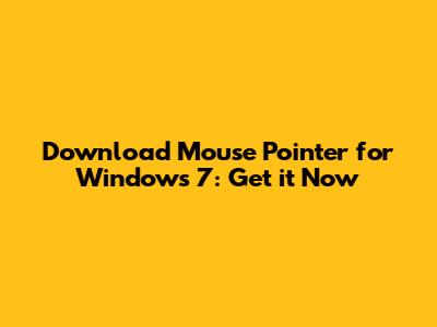 Download Mouse Pointer For Windows 7: Get It Now