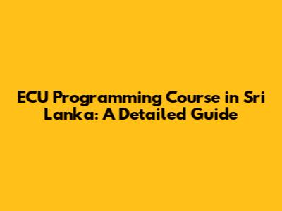 ECU Programming Course In Sri Lanka: A Detailed Guide