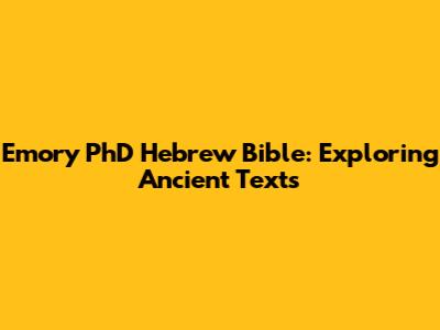 Emory PhD Hebrew Bible: Explore Ancient Texts