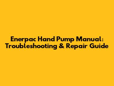 Enerpac Hand Pump Manual: Troubleshooting & Repair