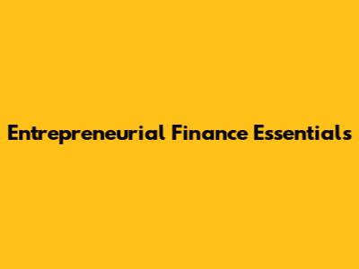 Entrepreneurial Finance Essentials