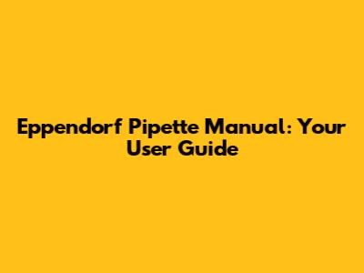 Eppendorf Pipette Manual: Your User Guide