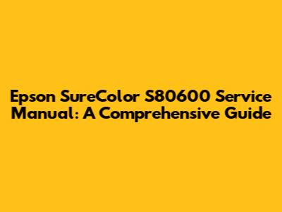 Epson SureColor S80600 Service Manual: A Comprehensive Guide