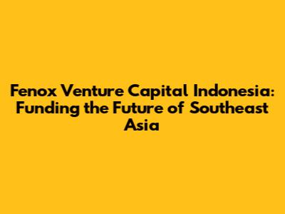Fenox VC Indonesia: Funding The Future Of Southeast Asia