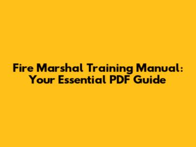 Fire Marshal Training Manual: Your Essential PDF Guide