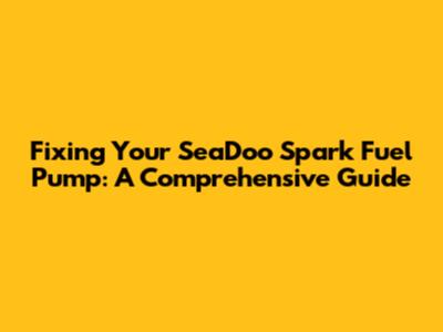 Fixing Your SeaDoo Spark Fuel Pump: A Comprehensive Guide
