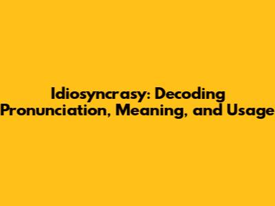 Idiosyncrasy: Pronunciation, Meaning, And Usage