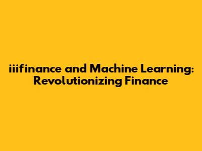 Iiifinance And Machine Learning: Revolutionizing Finance