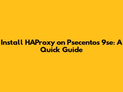 Install HAProxy On Psecentos 9se: A Quick Guide