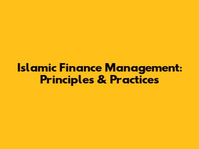 Islamic Finance Management: Principles & Practices