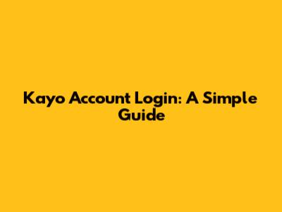 Kayo Account Login: A Simple Guide