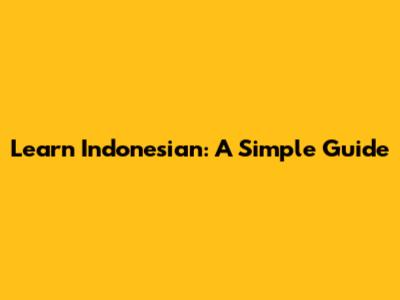 Learn Indonesian: A Simple Guide