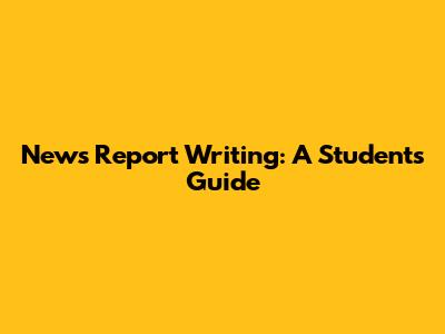 News Report Writing: A Student's Guide