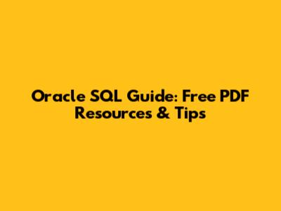 Oracle SQL Guide: Free PDF Resources & Tips