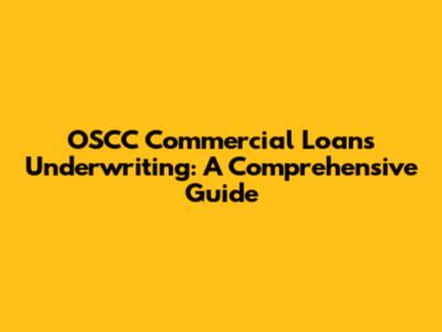 OSCC Commercial Loans Underwriting: A Comprehensive Guide