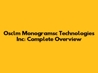 Osclm Monogramsc Technologies Inc: Complete Overview
