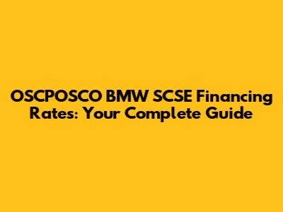 OSCPOSCO BMW SCSE Financing Rates: Your Complete Guide
