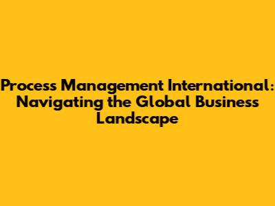 Process Management International: A Guide For Success