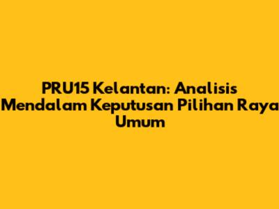 Keputusan PRU15 di Kelantan adalah satu peristiwa penting dalam sejarah politik negeri ini. Analisis terperinci mengenai keputusan parlimen dan DUN memberikan gambaran yang jelas mengenai sokongan rakyat terhadap parti-parti politik. Impak dan implikasi jangka panjang daripada keputusan ini akan membentuk hala tuju politik, ekonomi, dan sosial Kelantan. Kita berharap artikel ini memberikan pemahaman yang lebih mendalam mengenai keputusan PRU15 di Kelantan. Dengan memahami faktor-faktor yang mempengaruhi keputusan pilihan raya, kita boleh merenung dan belajar daripada pengalaman ini. Teruskan mengikuti perkembangan politik di Kelantan dan jangan lepaskan peluang untuk terlibat secara aktif dalam proses demokrasi!