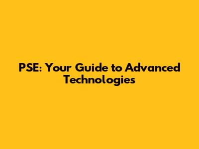 PSE: Your Guide To Advanced Technologies