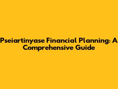 Pseiartinyase Financial Planning: A Comprehensive Guide