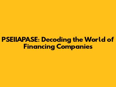 What Exactly is a PSEIIAPASE Financing Company?