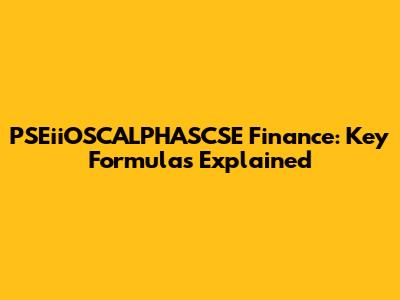 PSEiiOSCALPHASCSE Finance: Key Formulas Explained