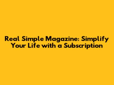In a world that’s constantly bombarding us with complexity and chaos, Real Simple magazine offers a refreshing dose of clarity and calm. It’s more than just a magazine; it’s a guide to living a more intentional, fulfilling life. With its practical advice, inspiring stories, and stunning visuals, Real Simple empowers you to simplify your surroundings, streamline your routines, and focus on what truly matters. So, what are you waiting for? Subscribe to Real Simple magazine today and start embracing the simple life! You deserve it!
