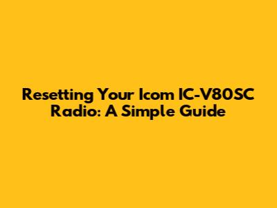 Resetting Your Icom IC-V80SC Radio: A Simple Guide