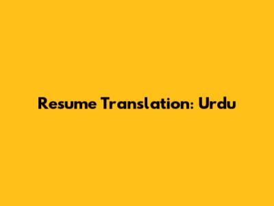 Resume Translation: Urdu